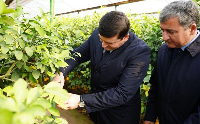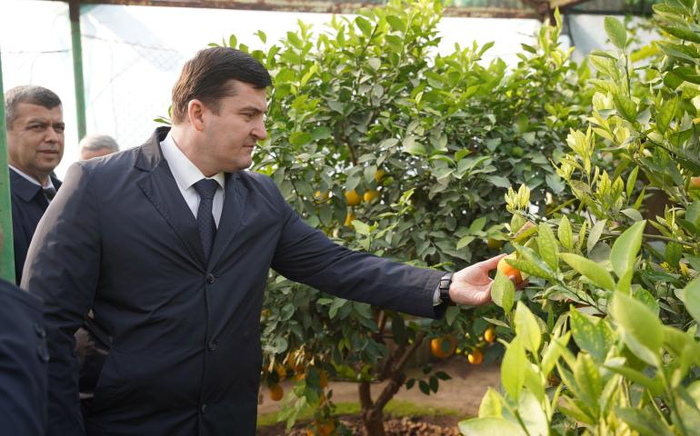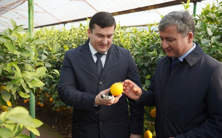 В ходе визита было сказано, что цитрусовые растения представляют собой большую группу вечнозелёных плодовых деревьев, относящихся к роду Citrus, входящему в подсемейство померанцевых (Aurantioideae) семейства рутовых (Rutaceae). На территории Республики Таджикистан цитрусовые выращиваются в траншеях и лимонариях с 1930-х годов XX века. Для их выращивания особенно подходят климатические условия Хатлонской и Согдийской областей, Гиссарской долины, Нижней Кофарнихонской долины, долины реки Пяндж, долин рек Сурхоб и Яхсу, а также районов республиканского подчинения.