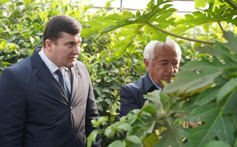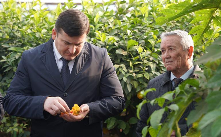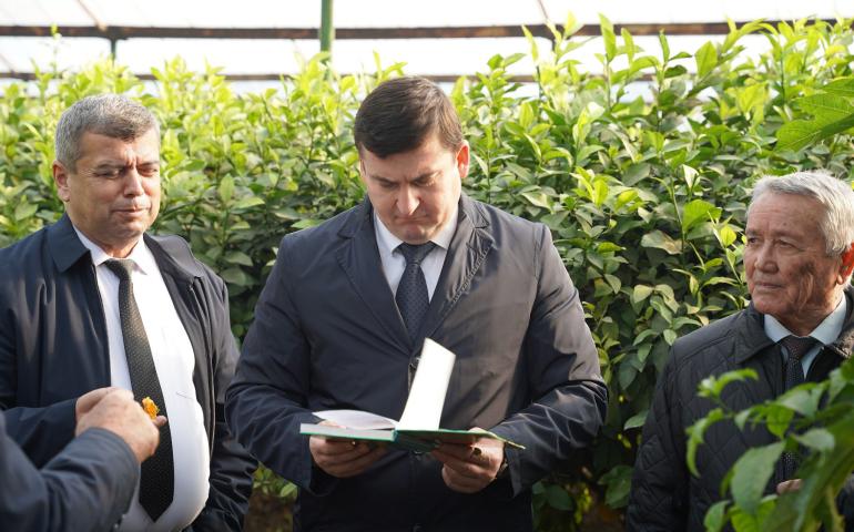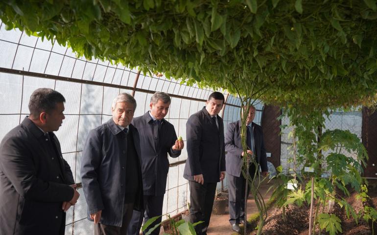 ВИЗИТ ПРЕЗИДЕНТА НАН РТ В ТЕПЛИЦУ ПО ВЫРАЩИВАНИЮ ЛИМОНА И ДРУГИХ СУБТРОПИЧЕСКИХ ФРУКТОВ НА ОПЫТНЫХ УЧАСТКАХ ИНСТИТУТА БОТАНИКИ