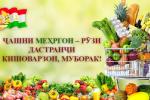 Бори дигар ҳамаи шумоён, ҳамватанони бурунмарзӣ, деҳқонон, чорводорон ва кормандони соҳаи кишоварзиро бо ин ҷашни ниёгон ва иди касбии кишоварзон муборакбод намуда, саломатӣ, хирмани пурбаракат ва комёбиҳои нав орзу менамоям.