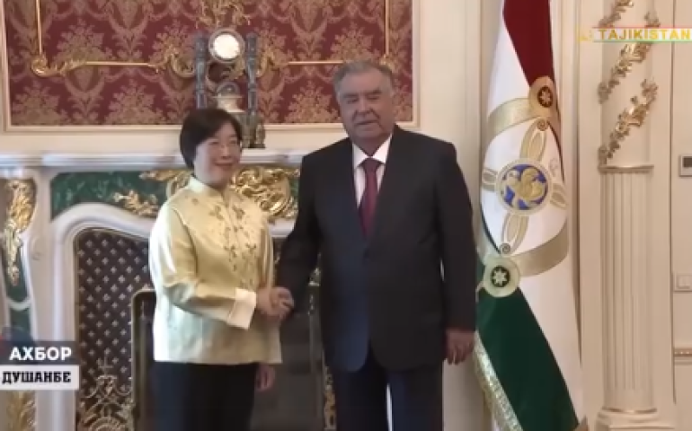 Президенти Ҷумҳурии Тоҷикистон Эмомалӣ Раҳмон Президенти Бонки Осиёии Сармоягузориҳои Инфрасохторӣ Тсзоу Ҷиайиро ба ҳузур пазируфтанд Феврал 14, 2026